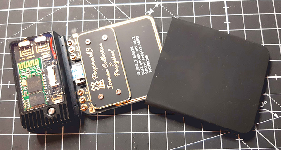 Qualifier le ChameleonUltra n'est pas chose facile, car il reprend certaines fonctionnalités du Proxmark 3, peut fonctionner comme un lecteur RFID/NFC 125 kHz (LF pour Low Frequency) et 13,56 MHz (HF pour High Frequency), mais aussi, et surtout, dispose de fonctions d'émulation/simulation de tags plus performantes que celles proposées par un Proxmark 3 (en termes de vitesse et de réactivité). De plus, le ChameleonUltra est minuscule (2,4 cm par 4 cm et 8 mm d'épaisseur) et peut fonctionner de façon autonome (accu LiPo) ou connecté à un PC/Mac via une liaison USB à connecteur USB-C et interface CDC-ACM (Communication Device Class - Abstract Control Model). Certes, un Proxmark 3 RDV4 équipé d'un module BlueShark Standalone fera de même, mais on ne parle pas du tout de la même échelle ici, ni en taille (cf. photos) ni en autonomie (~45 min pour le BlueShark contre plus de 6 mois pour le ChameleonUltra).