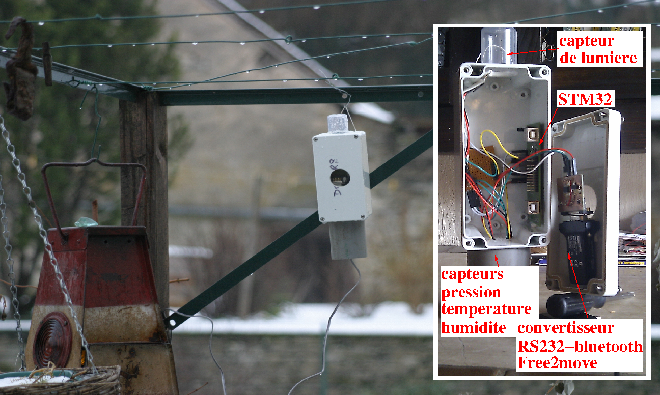 Nous nous sommes donc fixés comme objectif la réalisation d’une station météorologique (Fig. 5) équipée d’un capteur de pression, d’une sonde de température, d’un hygromètre et d’un capteur de lumière (Fig. 6). Au-delà de l’aspect ludique de pouvoir enregistrer les données sur une carte SD ou de les transmettre à un ordinateur, cette application va nous permettre d’aller plus avant dans la découverte de ce microcontrôleur. Les composants choisis étant hétérogènes du point de vue du protocole, il est donc nécessaire de comprendre et maîtriser des périphériques tels que le SPI, l’I2C, l’ADC et les timers.